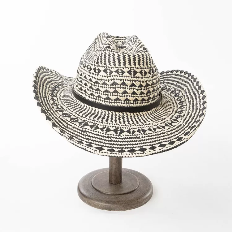 Boho Straw Cowboy Hat for Summer - Wide Brim Handwoven Sun Hat (57/59cm)