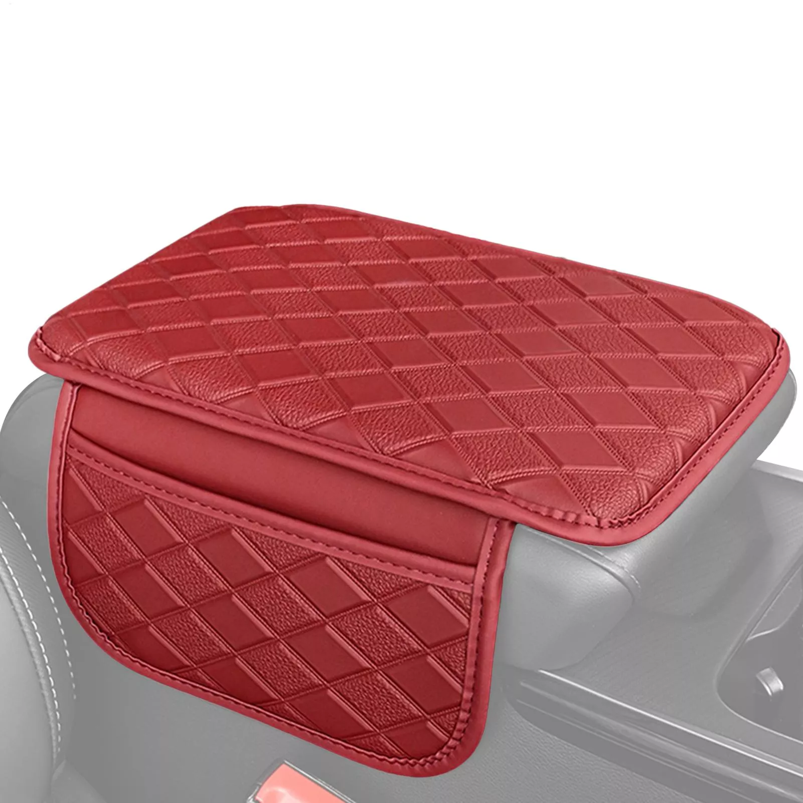 Car Center Console Cover with Armrest Cushion and Storage Pockets – Leather Armrest Protector