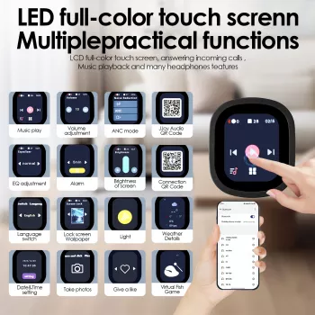 Hybrid Wireless Headphones with ANC & LED Touch Screen – Bluetooth 5.3