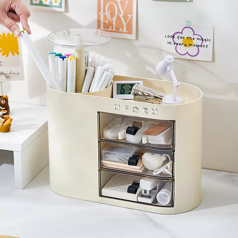 Large Capacity Transparent Desk Organizer with Drawers