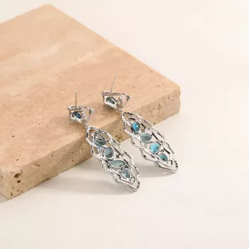 Natural London Blue Topaz Dangle Earrings in 925 Sterling Silver - Handmade Statement Jewelry