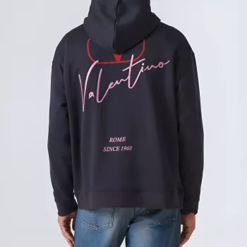Valentino Cotton Hoodie with Contrasting Monogram and Logo Details