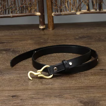 Women's 2cm Genuine Leather Belt with Brass Buckle