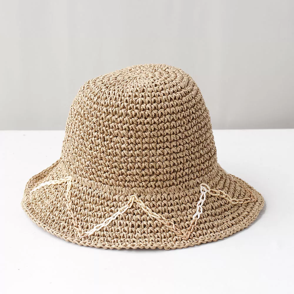 Women's Foldable Straw Sun Hat with Wide Brim – UV Protection Beach Hat
